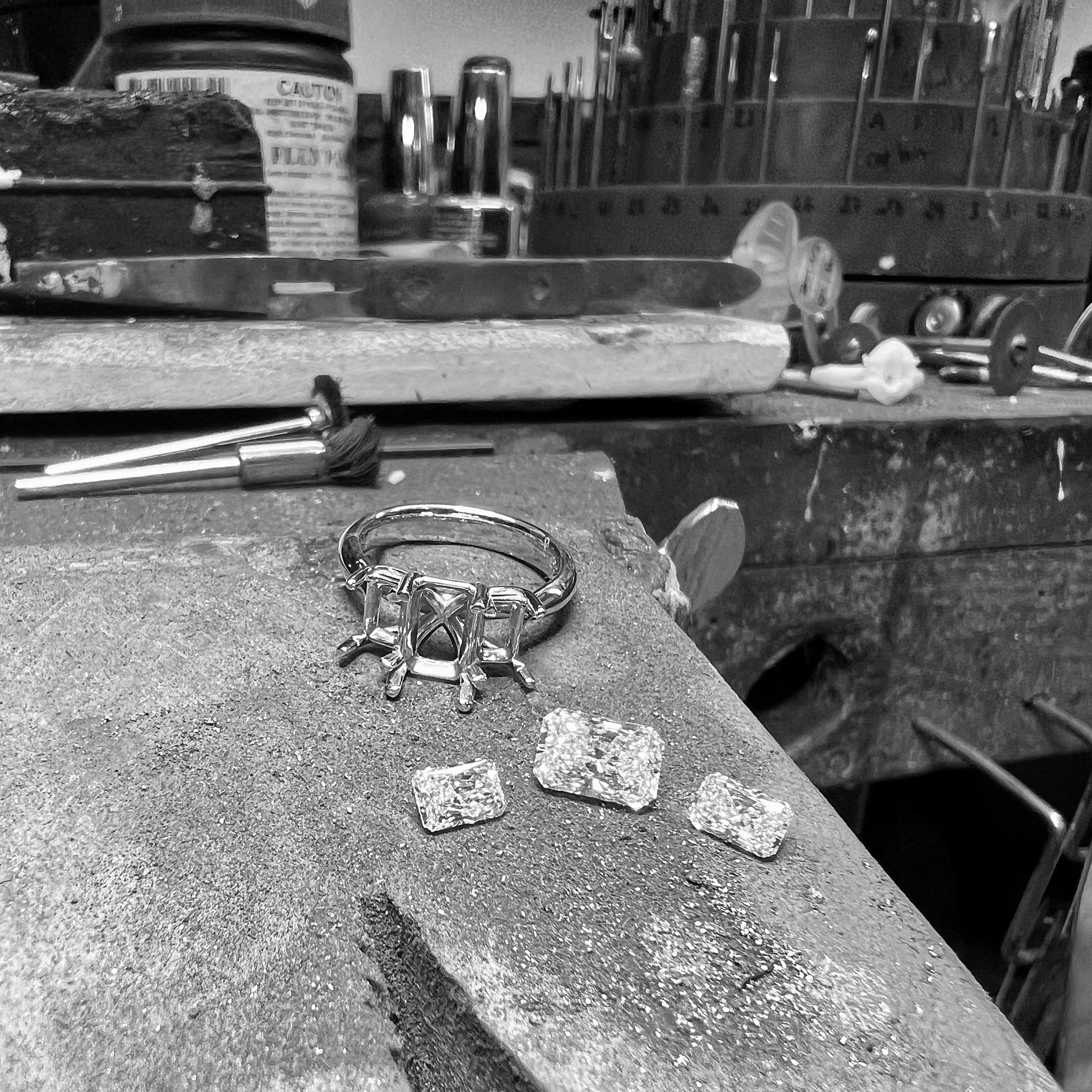Once the prototype is ready, our expert craftsmen then carefully set each gemstone into the 3D resin prototype. It is with the placement of these gemstones that this creation comes to life so you can see, feel and try on a model of your engagement ring.