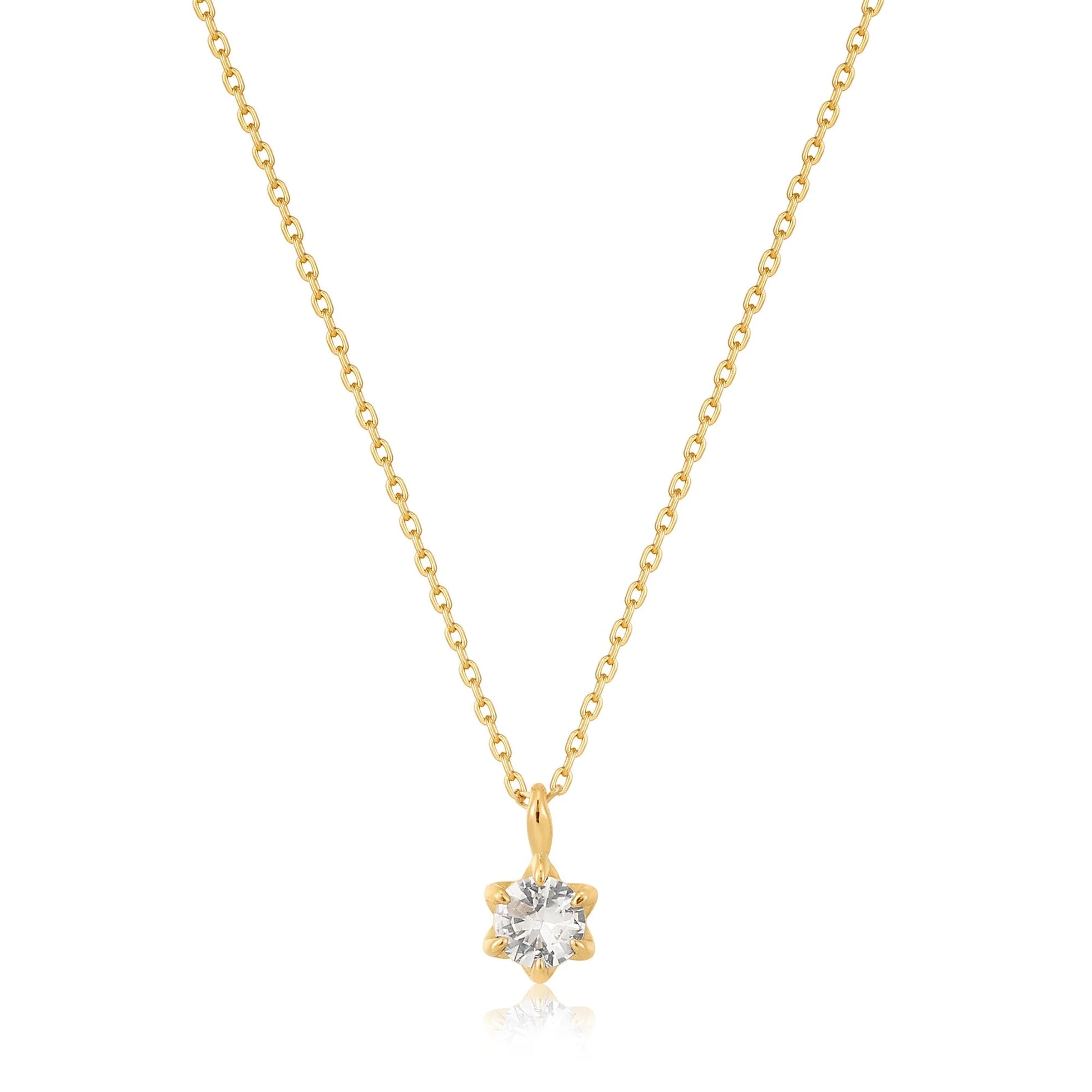 With a vintage-inspired aesthetic, our stunning white sapphire pendant makes a chic and minimal statement this season. Set on solid 14kt recycled gold, the pendant features a single sparkling white sapphire. The perfect choice to dress up a day look or add some luxe shimmer to an evening outfit.