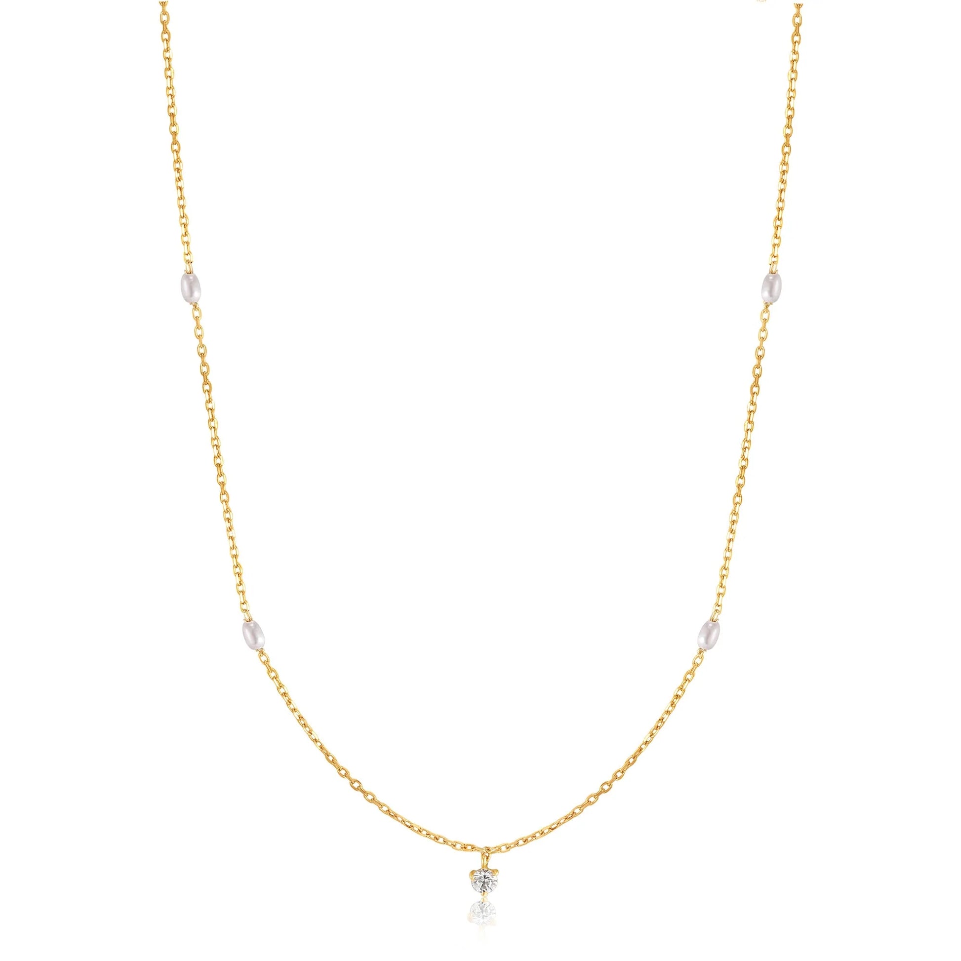 When a single pendant drop just isn’t enough, our brand-new pearl and white sapphire necklace is the perfect choice. Set on a subtle solid gold chain, a white sapphire pendant is teamed with twelve stunning unique pearls surrounding the entire chain, breathing new life into this classic accent. The ideal everyday touch of luxury.