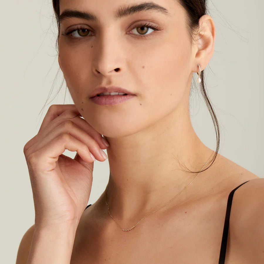 A luxe twist on a classic bar necklace, this season, choose our new natural diamond bar chain packed with a sprinkling of sparkling diamond stones. Crafted in 100% recycled solid gold, it’s the perfect choice to add to all of your layered necklace looks. Wear with anything from a simple white tee to your most sultry plunging LBD.