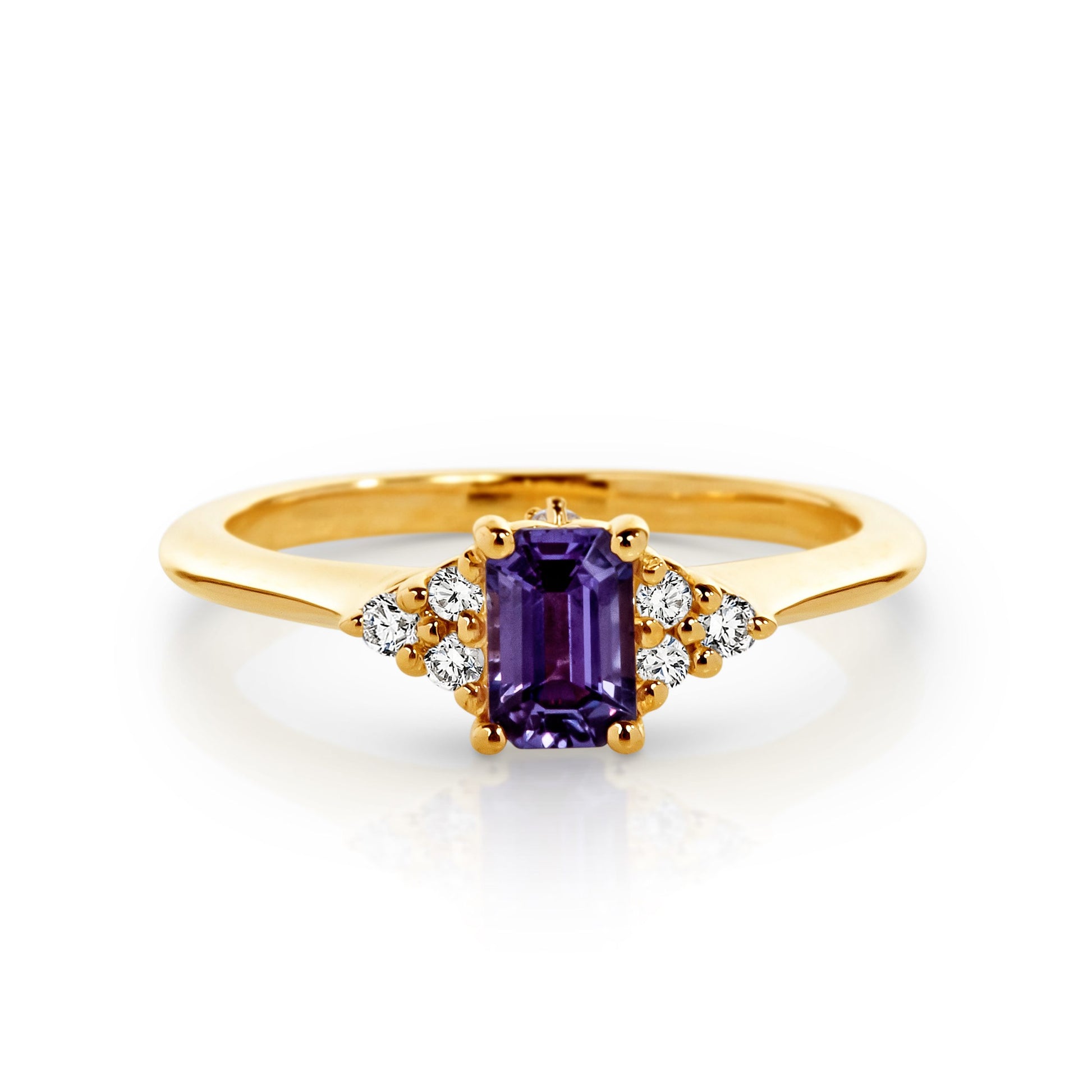 10ct yellow gold Emerald cut Purple Sapphire with diamonds