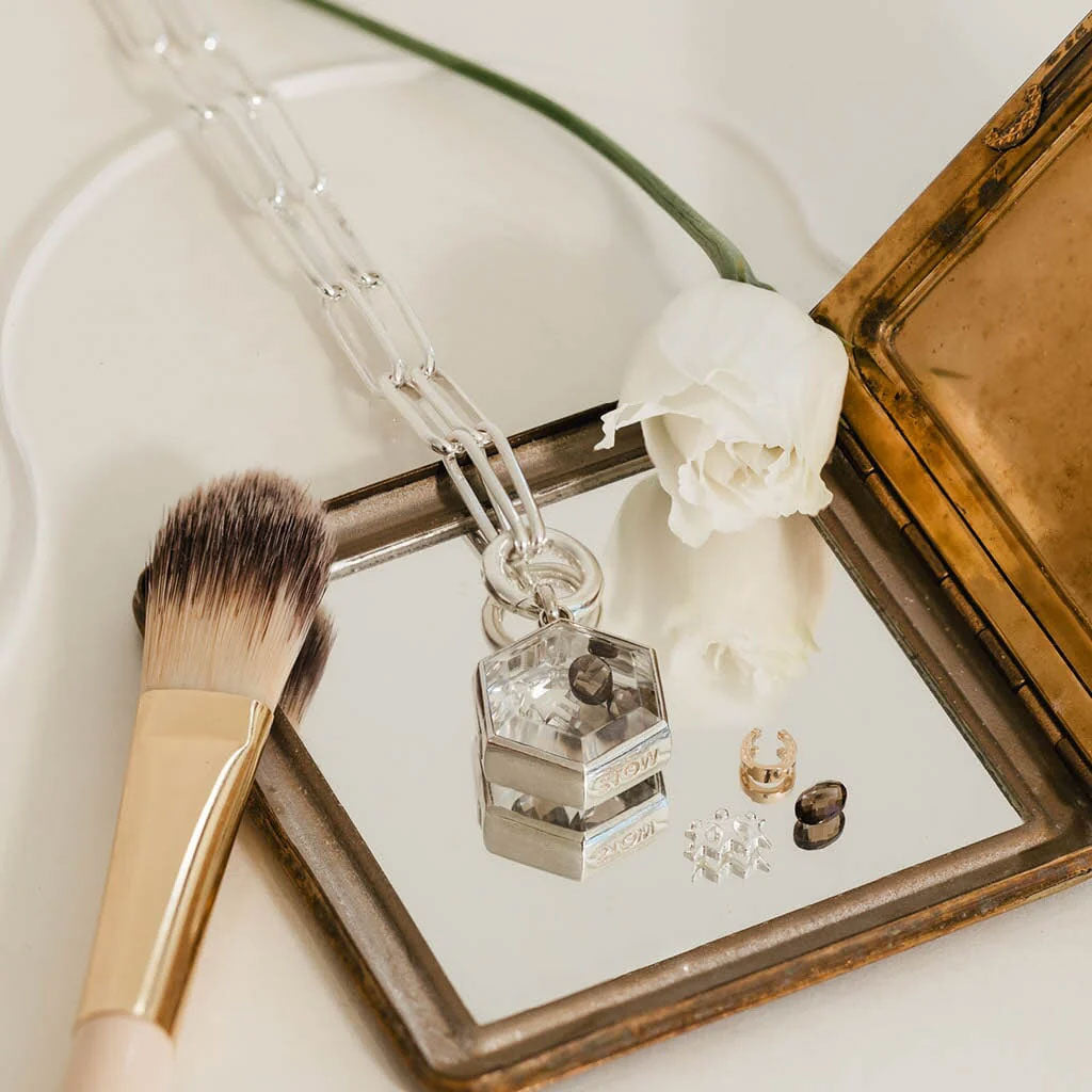 Our Stow Statement Paper Clip Chain is finely crafted from solid sterling silver, featuring a round opening clasp. Especially designed to be worn at the front, this unique clasp allows the wearer to showcase their precious Stow Locket.